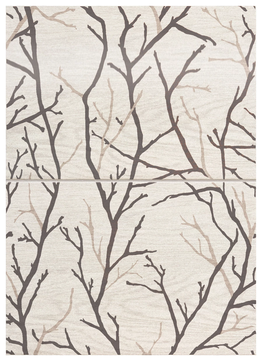 Inverno Tree dekor 2-Elementowy 50,2x36 to duża płytka dekoracyjna wykonana z matowej glazury. Na jasnym, kremowym tle wyraźnie widoczne są gałązki w odcieniach brązu. Wzór jest stonowany, ale jednocześnie wyrazisty, proponując minimalistyczne podejście do dekoracji ścian. Płytka podzielona jest na dwa elementy, które razem tworzą spójny motyw roślinny.