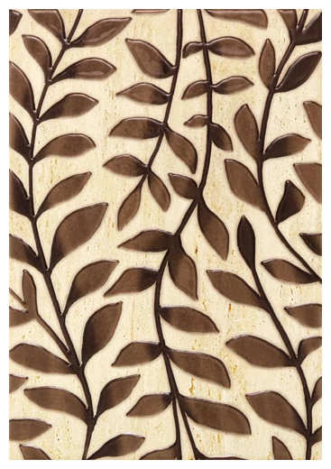 Toscana 2 dekor 25x36 to glazura dekoracyjna z kolekcji Toscana, produkowana przez Domino. Ta duża płytka dekoracyjna ma rozmiar 25x36 cm i powierzchnię błyszczącą. Jej wzór to motyw gałązek z liśćmi w odcieniach brązu na jasnym tle, co wprowadza do wnętrza naturalny i wyraźny akcent wizualny.