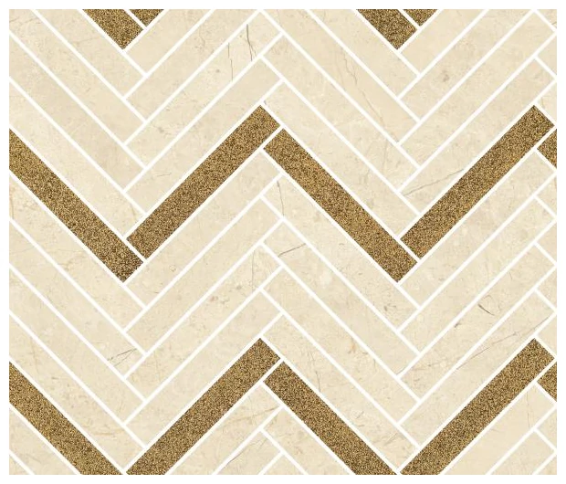 Sunrise Beige to duża mozaika o wymiarach 28,1x30,1 cm, która wyróżnia się prostym, uporządkowanym wzorem nadającym przestrzeni ciekawy wygląd. Połączenie beżowych odcieni i jasnych żyłek tworzy stonowaną bazę, a wstawki z ciemniejszymi żółto-brązowymi elementami dodają całości wyrazistości i struktury. Dzięki temu powierzchnia nabiera trójwymiarowego charakteru, który łatwo przyciąga uwagę, ale nie narzuca się nadmiernie.