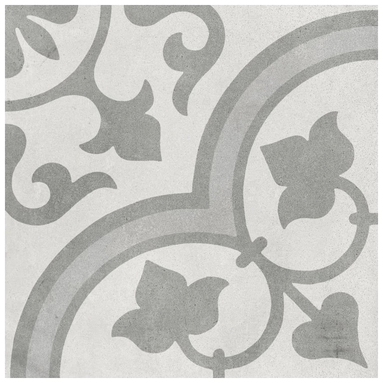 Cuban Silver Ornate to gres o wyraźnym, geometrycznym wzorze, który bazuje na kontrastujących odcieniach szarości na matowej powierzchni. Wzór przypomina klasyczny motyw, który może przywoływać skojarzenia z tradycyjną mozaiką, ale utrzymany jest w nowoczesnym, spokojnym stylu. Jego duży format 22,3x22,3 cm pozwala na dynamiczne układanie, które podkreśli charakter wnętrza bez przesadnej krzykliwości.
