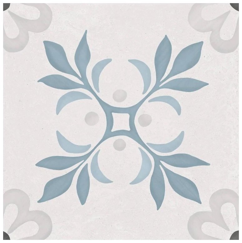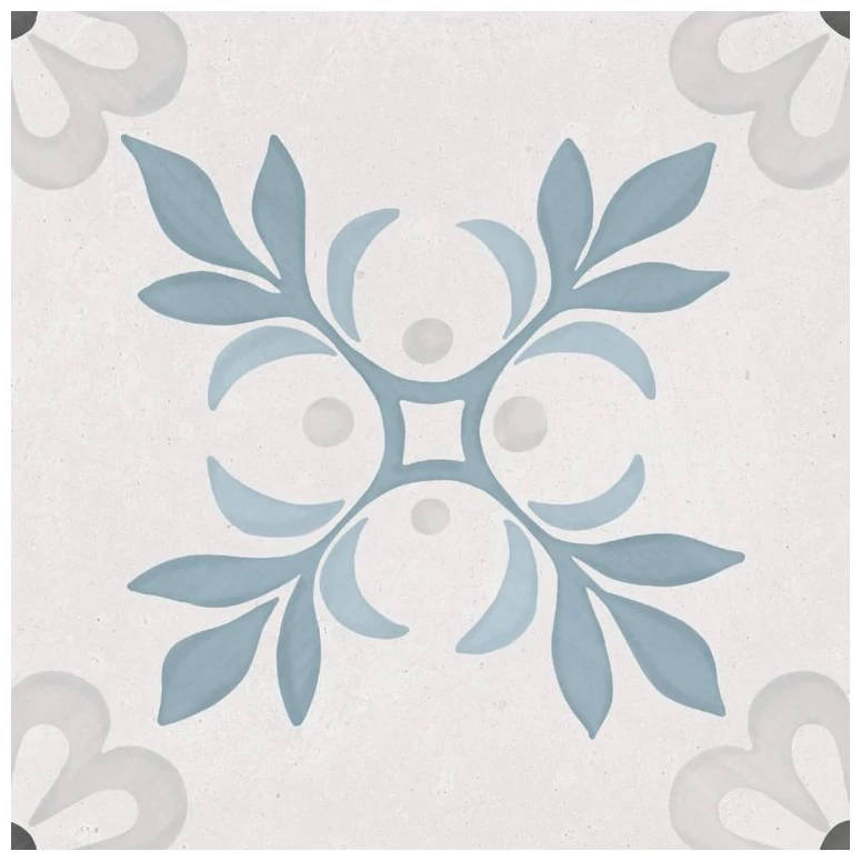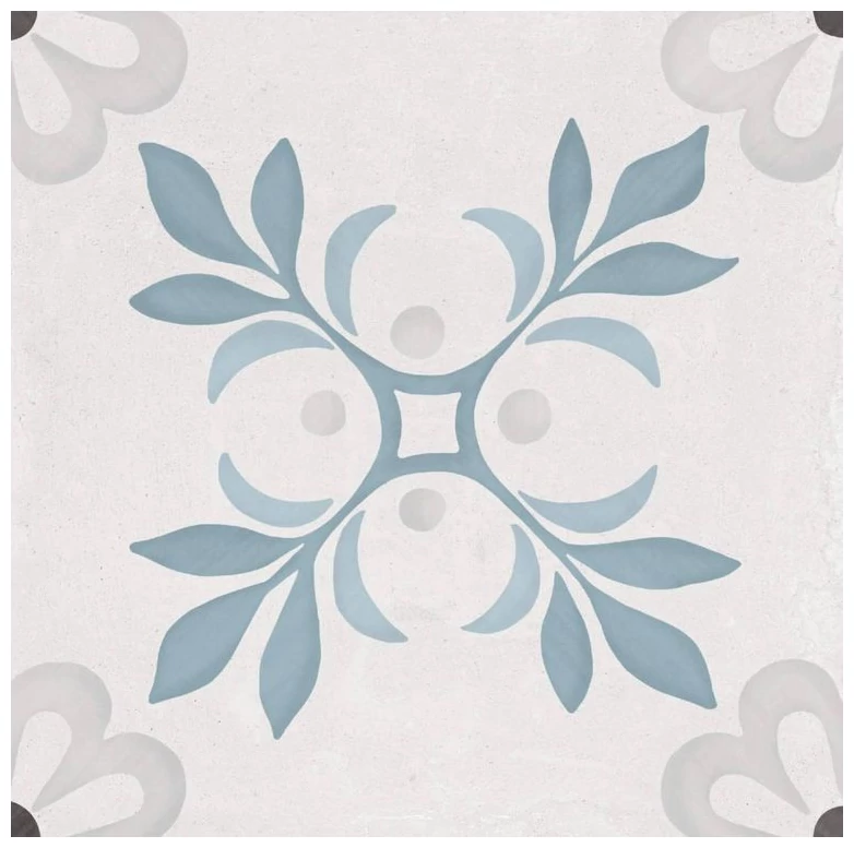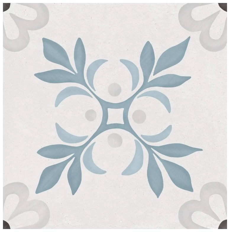 Duży gres hiszpański Sirocco Blue Garden zwraca uwagę wzorem, który bazuje na jasnym tle z delikatnym motywem w odcieniach niebieskich i szarości. Projekt z kolekcji Harmony Sirocco jest utrzymany w matowej powierzchni, co eliminuje odblaski i nadaje mu wyważony wygląd. Wzór jest dość minimalistyczny, nieprzerysowany, dzięki czemu nie męczy wzroku i pozostawia pole do aranżacyjnych eksperymentów.