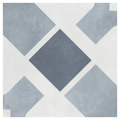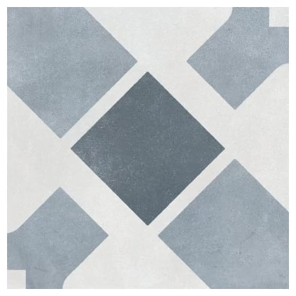 Havana White Cross to duża płytka gresowa o wymiarach 22,3x22,3 cm z kolekcji Harmony Havana, produkowana przez hiszpańską markę Peronda. Jej wzór to uporządkowana, wyrazista grafika w stylu geometrycznym - centralny ciemniejszy kwadrat otoczony jest jasno- i średniotonowymi elementami tworzącymi krzyż, na tle białej powierzchni. Ta kompozycja przykuwa uwagę i może stanowić ciekawy akcent w aranżacji podłogi.
