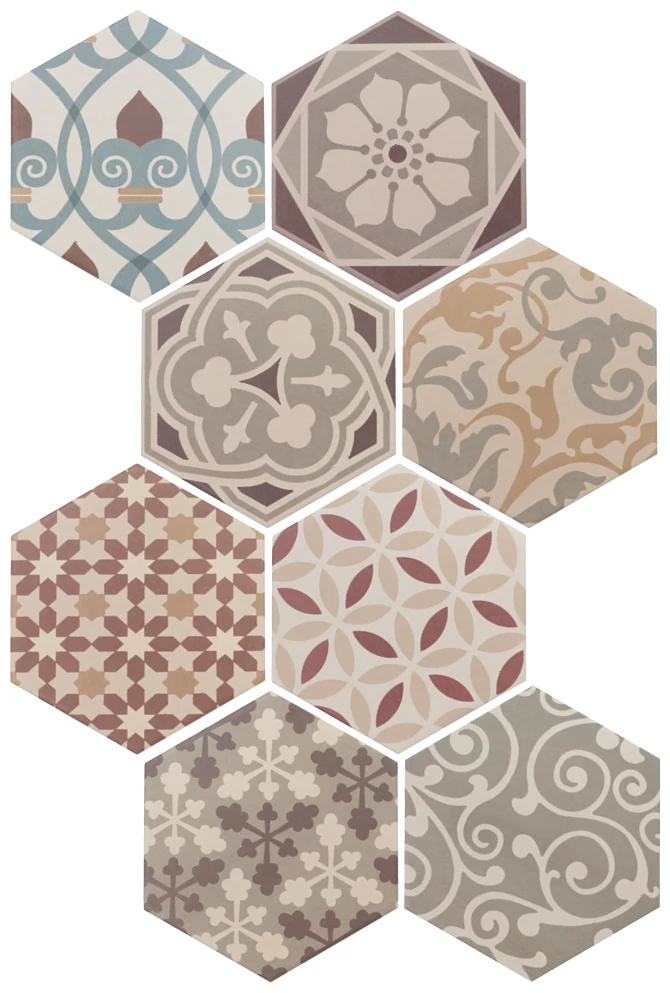 Jednym z najbardziej charakterystycznych atutów tego produktu jest jego niepowtarzalny heksagonalny kształt, który dodaje wnętrzom nowoczesnego charakteru i wyjątkowego stylu. Płytki o wymiarach 17,5x20 cm są nie tylko estetyczne, ale również bardzo praktyczne, co pozwala na ich dopasowanie zarówno do większych, jak i mniejszych przestrzeni. Kolorystyka mix tworzy interesujące kompozycje, które wprowadzą do wnętrza harmonię i przytulność.