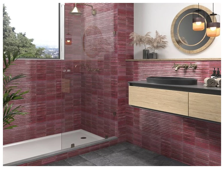 Wyjątkowy fioletowy kolor płytek nadaje wnętrzom niepowtarzalnego charakteru. Ten odcień wprowadza atmosferę luksusu i subtelnej elegancji, idealnie komponując się z różnymi stylami aranżacji - od klasycznego po nowoczesny. Fioletowe płytki ścienne mogą być zarówno głównym elementem dekoracyjnym, jak i delikatnym akcentem, który uzupełni całość wystroju.