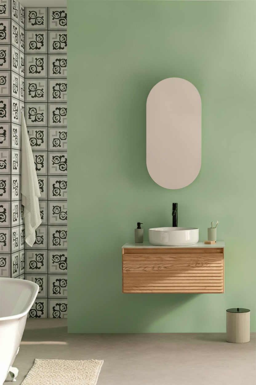 Kolory pozostają stonowane - przede wszystkim szarości i czerń, na tle bieli, co świetnie wpisuje się w matową powierzchnię. Matowa faktura płytki eliminuje refleksy świetlne, więc nie narzuca się wzorem, ale pozwala mu współgrać z otoczeniem w niezbyt agresywny sposób. Proporcje i linie są tu wyważone, choć nieprzesadzone, co nadaje całości spokojnego, ale jednak zauważalnego charakteru.
