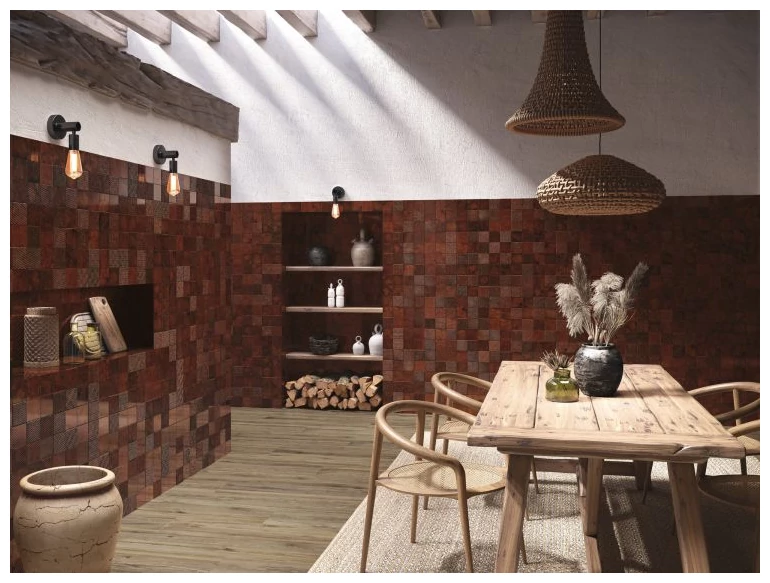 Brązowy kolor płytki sprawia, że doskonale współgra z naturalnymi materiałami, takimi jak drewno czy kamień. Warto również postawić na kontrastowe akcenty, na przykład białe lub beżowe elementy wyposażenia, które podkreślą głębię koloru płytki. Dzięki swojej uniwersalności, Ape Ceramica mimosa garnet płytka ścienna 10x10 pozwala na eksperymentowanie z różnymi stylami wnętrzarskimi - od klasycznego po nowoczesny.