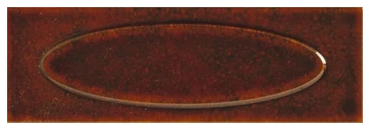 Wzór oparty na lekko wydłużonym, owalnym kształcie nadaje mu pewnej geometrycznej wyrazistości. Całość nie jest jednolita, a powierzchnia ma delikatne nierówności, które nadają rustykalnego klimatu, typowego dla glazury hiszpańskiej w stylu retro.