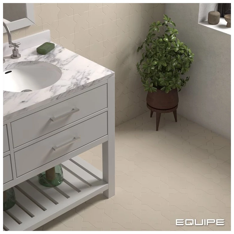 Porto Cross Taupe to gres o nietypowym kształcie, który wyróżnia się spośród tradycyjnych płytek. Jasny, beżowy kolor jest neutralny, co ułatwia dopasowanie go do różnych stylów wnętrz, zwłaszcza w łazience i kuchni. Dzięki matowej powierzchni płytka nie odbija światła w nachalny sposób, co pomaga zachować stonowany, praktyczny wygląd. Format 17,5x20 cm sprawia, że produkt jest kompaktowy i łatwy do wykorzystania w małych przestrzeniach.