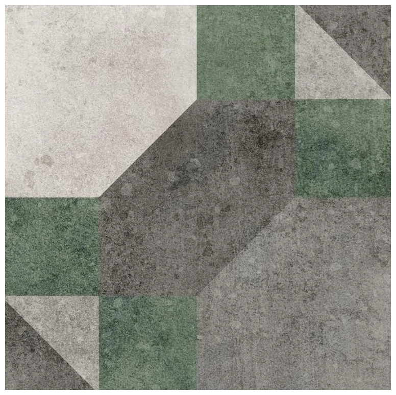 Gres Garibaldi 20x20 z kolekcji Milano od producenta Dune to produkt, który przyciąga uwagę wzorem opartym na prostych, geometrycznych formach. Przeplatają się tu kwadraty i trapezy, tworząc ciekawą mozaikę w odcieniach szarości i zieleni. Wzór jest zdecydowany, jednak nie nachalny - dobrze wpisuje się w aranżacje wymagające wyraźnego akcentu, ale bez przesadnej ekspresji. To propozycja dla osób, które lubią stonowane kolory z domieszką oryginalności.