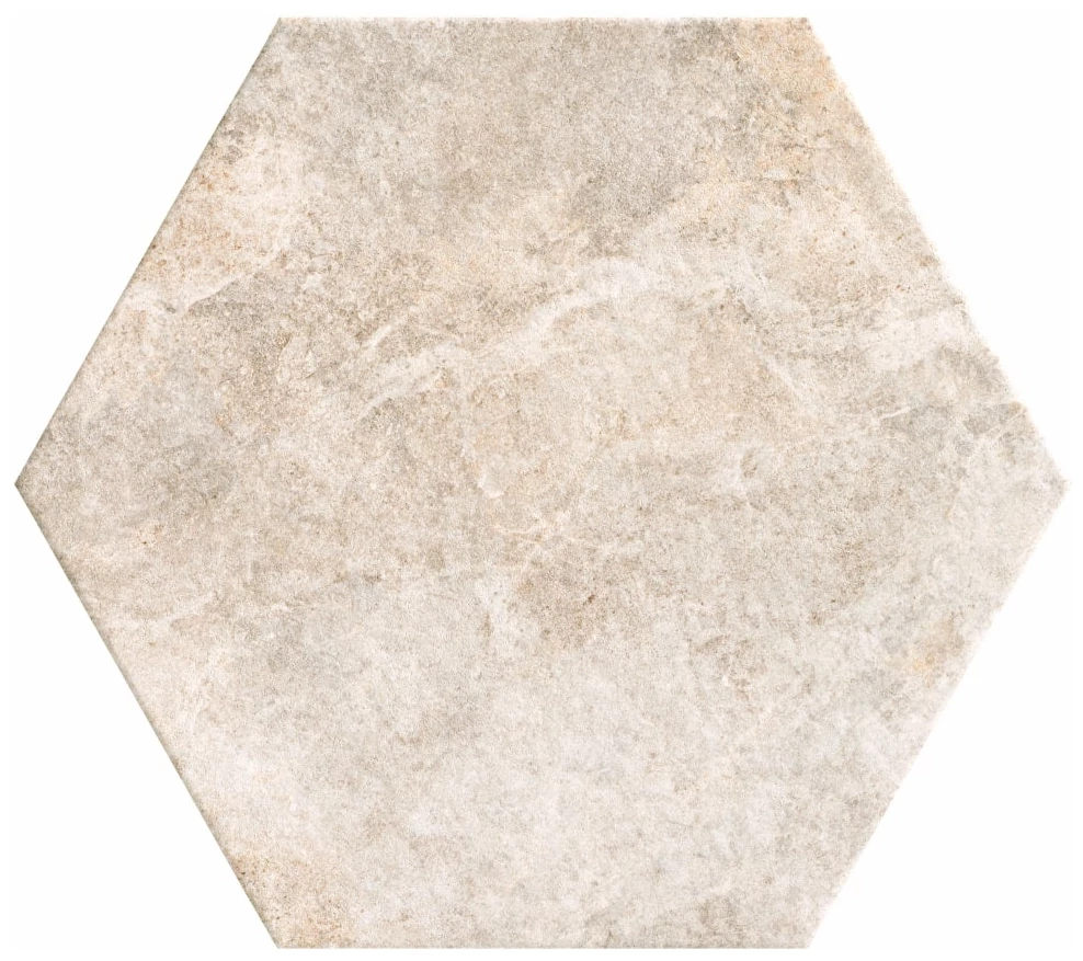Arlet White to gres heksagonalny podłogowy o dużych wymiarach - 48,5x56 cm. Jego kształt sześciokąta daje sporo możliwości aranżacyjnych. Delikatne odcienie beżu i jasnoszarego, a także lekka nieregularność wzoru przypominają naturalny kamień. Całość ma matową powierzchnię, co wpływa na subtelną, nieświecącą teksturę - dzięki temu płytka jest mniej śliska i łatwiej utrzymać ją w czystości bez efektu odblasków.