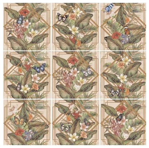 Ten gres firmy Aparici z kolekcji Tropical ma naprawdę wyrazisty charakter. Duży format 30,5x30,5 cm pozwala na zobaczenie pełni wzoru, a błyszcząca powierzchnia podkreśla kolory i detale. Dzięki temu jest to gres hiszpański w stylu glamour na podłogę, który przyciąga uwagę nie tylko wzorem, ale też estetyką wykończenia. Paleta barw opiera się na naturalnych tonach zieleni i beżu, uzupełnionych akcentami kwiatowymi i geometrycznymi liniami - to zestawienie daje ciekawy, choć nie nadmiernie krzykliwy efekt.
