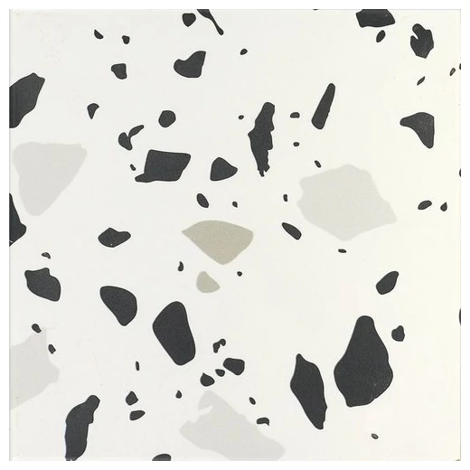Trendy Black gres 20x20 od APE Ceramica to propozycja, która od razu przyciąga wzrok wzorem nawiązującym do lastryko, czyli powierzchni przypominającej tradycyjne, wielobarwne wtrącenia. Czarny i szary wzór na białym tle wpisuje się w estetykę retro i może przypominać klasyczne podłogi z lat minionych, jednak we współczesnym, matowym wykończeniu. To subtelne połączenie pozwala na dobre dopasowanie do różnorodnych wnętrz, gdzie chcemy uzyskać nieco surowy, ale ciekawy i modny efekt.