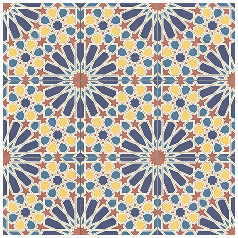 Alhambra Blue to gres hiszpański w stylu retro podłogowy, który przyciąga wzrok złożonym, geometrycznym wzorem w odcieniach niebieskiego, żółtego oraz czerwonego. Te barwy sprawiają, że każdy fragment powierzchni zyskuje indywidualny charakter i jednocześnie współgra z resztą aranżacji.