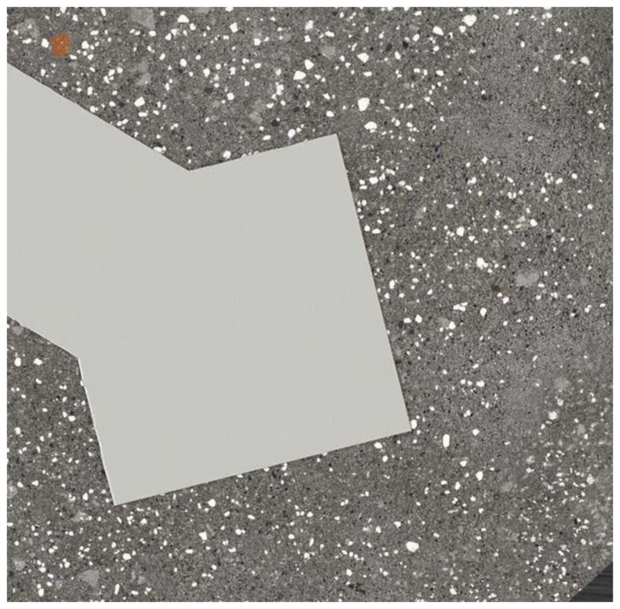 Produkt Ricetta Graphite Taglio to gres hiszpański, który wyróżnia się na tle innych płytek swoim geometrycznym wzorem. Mimo niewielkich rozmiarów 15x15 cm jest bardzo wyrazisty i nadaje charakter wnętrzom. Powierzchnia o matowym wykończeniu prezentuje efekt kamienia, co dodaje mu autentyczności i sprawia, że wzór nie jest płaski czy sztuczny. Szarości z domieszką drobnych elementów w białych i ciemniejszych tonacjach wprowadzają interesującą strukturę wizualną.