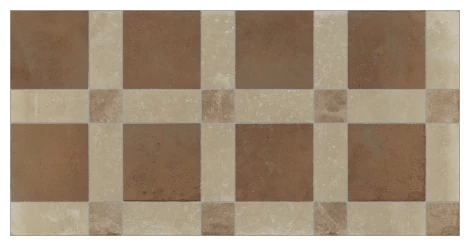 Płytka Cotto Stamp Natural to propozycja od producenta Aparici, pochodzącego z Hiszpanii. Ma wymiary 50x100 cm i podkreśla swój rustykalny charakter przez estetyczne, naturalne kolory. Połączenie beżu oraz brązów układa się w regularne wzory prostokątów i kwadratów, które nie są przesadnie krzykliwe, ale wprowadzają wyraźną strukturę do przestrzeni. Taka kompozycja nadaje wnętrzom wyrazistość bez zbędnej finezji, więc dobrze sprawdzi się zarówno w domach, jak i miejscach użyteczności publicznej.
