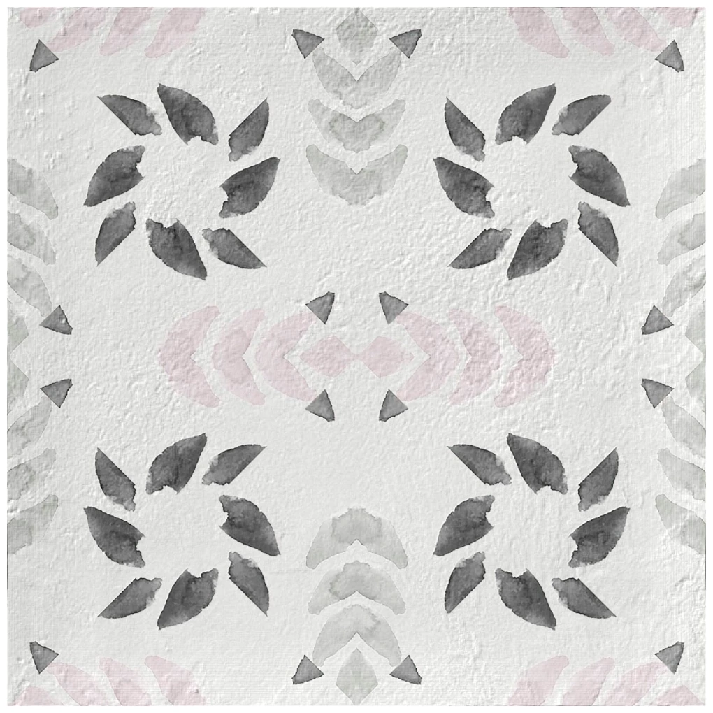 Gres hiszpański w stylu rustykalnym na podłogę z kolekcji Harmony Dakar wyróżnia się drobnym, subtelnym ornamentem. Wzór komponuje się z delikatnych łuków i liści w odcieniach szarości i bladego różu, które układają się w regularne grupy na jasnym tle. Matowa powierzchnia płytki nadaje jej wyważony, nieprzesadnie błyszczący wygląd, dzięki czemu wzór pozostaje stonowany, lecz widoczny. Taka faktura ogranicza też odbicia światła, co wpływa na komfort użytkowania i estetykę w pomieszczeniu.