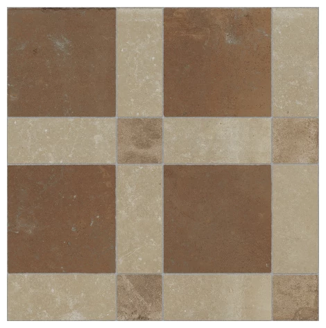 Ten gres hiszpański z kolekcji Cotto to płyta o wymiarach 59,2x59,2 cm, która od razu rzuca się w oczy swoim rustykalnym stylem. Ciąg prostych, geometrycznych wzorów łączy ciepłe odcienie brązów i beżu, tworząc układ przypominający klasyczne kafle z dawnych lat. Matowa powierzchnia podkreśla naturalny efekt i eliminuje zbędny połysk, co wpływa na praktyczność, a jednocześnie utrzymuje estetykę w surowym, lekko vintage"owym klimacie.