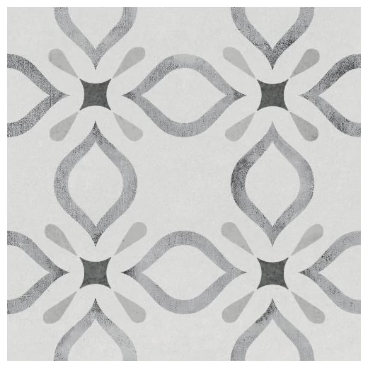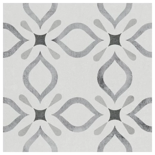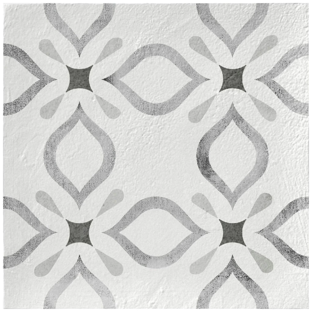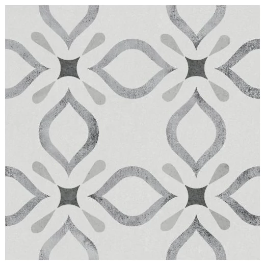 Ornament nie jest przesadnie skomplikowany, a jednocześnie tworzy powtarzalny, rytmiczny motyw, który może mieć wpływ na odbiór całego pomieszczenia - nie przytłacza, ale zwraca uwagę i skupia wzrok. Szarości i biel płytki wpisują się w ponadczasowe palety kolorystyczne, które łatwo zestawić z różnymi stylami wnętrz.