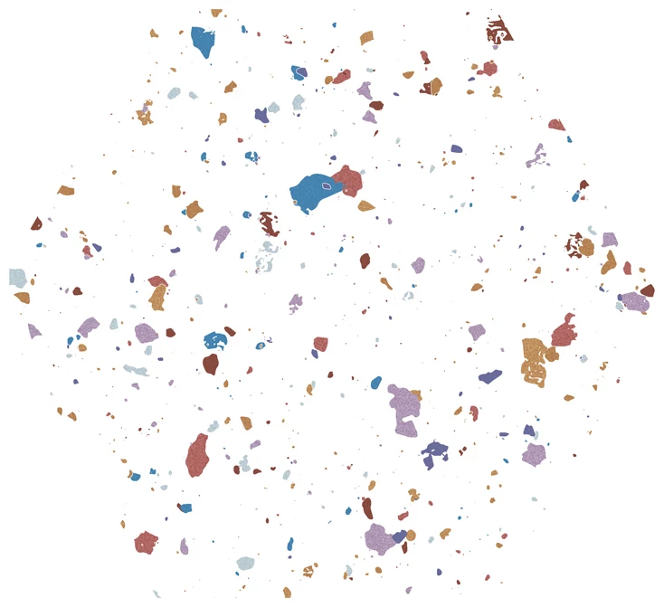 Stracciatella White Natural to gres podłogowy o matowej powierzchni, który zwraca uwagę zaskakującym wzorem. Na białym tle rozsiane są nieregularne plamki w kilku odcieniach - od czerwieni, przez błękit i fiolet, po brąz. Ten nieregularny rozkład barw nadaje płytce unikatowy charakter, który nie powiela się idealnie na kolejnych elementach.