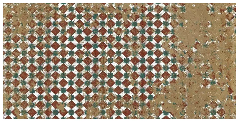 Zest Siena Star Stramp Natural to gres podłogowy, który od razu przyciąga wzrok. Jego powierzchnia mieni się nietypowym wzorem geometrycznym - drobne kwadraty i kropki w białych, czerwonych i zielonych odcieniach tworzą nieregularną, ale spójną mozaikę. Marginesy płytki pozostają w ciepłej, matowej beżowej tonacji z lekko postarzonym efektem. Całość prezentuje się autentycznie, bez przesadnej symetrii, co podkreśla charakterystyczny vintage look. Takie rozwiązanie wnosi do wnętrza konkretne odniesienie do hiszpańskiej tradycji gresem stylizowanym na stare kafle.