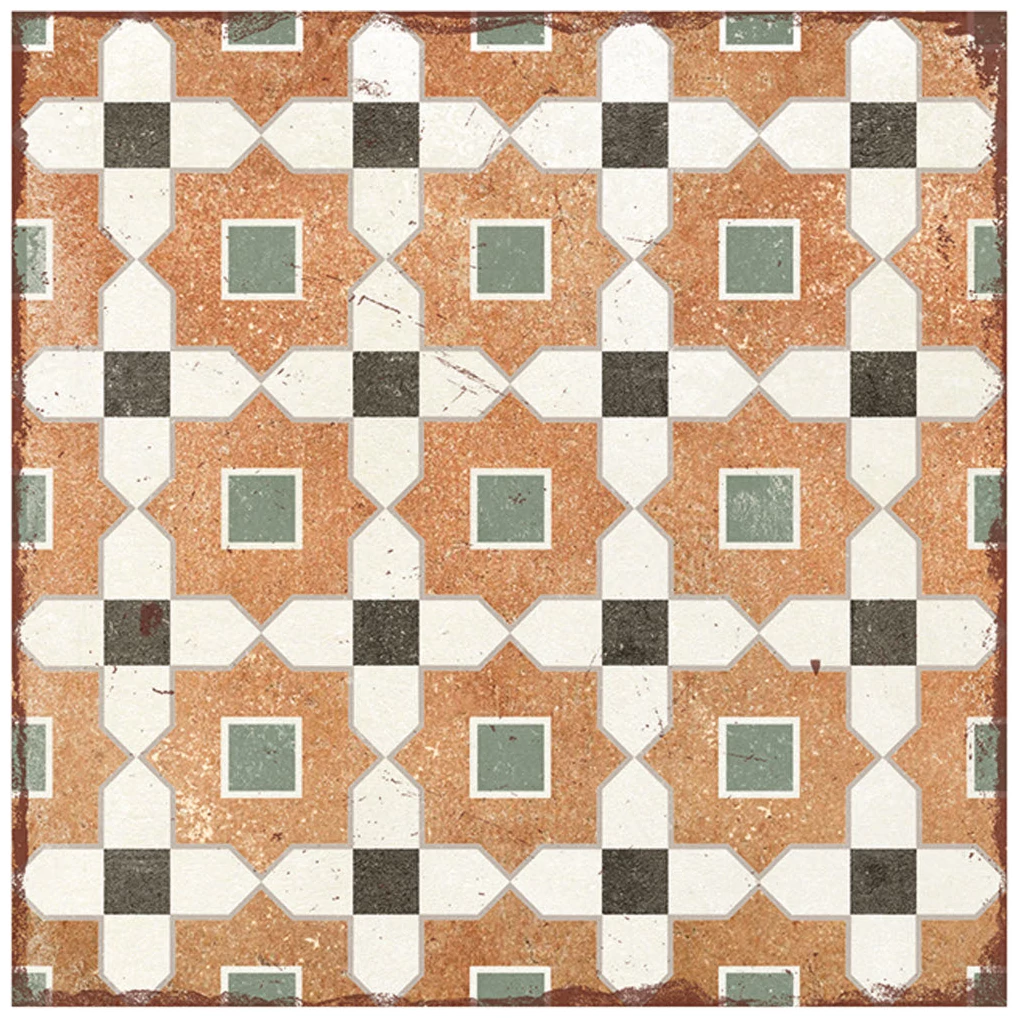 Alhambra Tessina to gres o wymiarach 20x20 cm, którego powierzchnia ma matowe wykończenie. Wzór na płytce jest wielobarwny i wyraźny, utrzymany w spokojnych, ale niejednolitej kolorystyce. Użyto beżu, bladej zieleni, czerni i jasnych odcieni, które tworzą geometryczny, powtarzalny motyw w stylu vintage. Pomimo wyraźnej formy, ten hiszpański gres nie przytłacza przestrzeni - raczej dodaje jej wyrazu i charakteru. Widać, że dekoracja nawiązuje do tradycyjnych wzorów, ale sprawdza się również w nowoczesnych wnętrzach.
