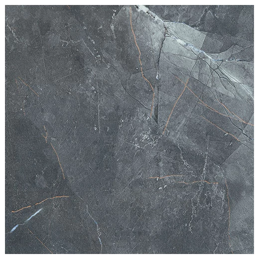 Produkt prezentuje się w kolorystyce bazującej na głębokiej czerni przełamanej delikatnymi, nieregularnymi liniami w jaśniejszych odcieniach szarości oraz subtelnych pomarańczowych żyłkach. To gres lappato na podłogę, co oznacza, że jego powierzchnia jest częściowo wypolerowana i delikatnie matowa, dzięki czemu płytki zyskują nowoczesny i estetyczny wygląd z fantazyjną teksturą, która łapie światło w intrygujący sposób. Wymiar 59,8x59,8 cm, czyli wielkoformatowy format, pozwala na zachowanie ciągłości wzoru i minimalizuje ilość fug, co pozytywnie wpływa na wizualną spójność przestrzeni.