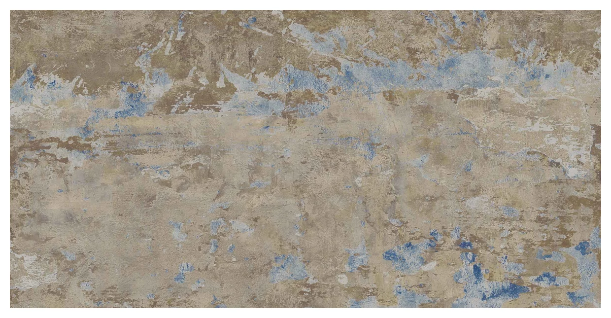 Evoke Blue Natural to gres rektyfikowany o wielkoformatowym formacie 59,55x119,3 cm, który wyróżnia się powierzchnią matową z efektem metalu. Kolory zdominowane są przez naturalne beże i zimne błękity, które nie są jednolite, lecz układają się w nieregularne wzory przypominające przemysłową fakturę. To nie przypadek - powierzchnia stawia na autentyczność i surowość metalu, co nadaje wnętrzom bardziej industrialny, nowoczesny charakter.