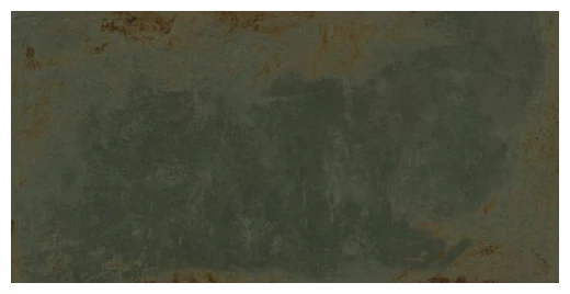 Efekt metalu nie oznacza tutaj blasku czy połysku, lecz raczej strukturę przypominającą powierzchnię metalową z naturalnymi śladami zużycia i patyny. Kolory przechodzą subtelnie od ciemnej zieleni do lekko rdzawego akcentu - widoczne na krawędziach - co dodaje materiałowi specyficznej tekstury. Całość wygląda surowo, technicznie, co wpisuje się w nowoczesne i przemysłowe wnętrza.