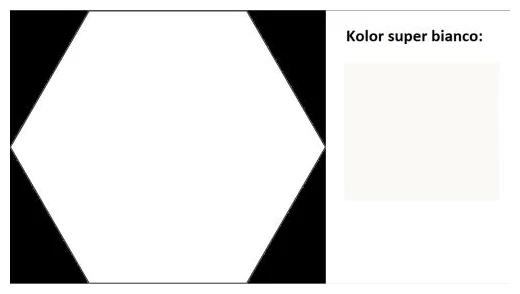 Gres mrozoodporny Cielo E Terra Super Bianco Geometry w formacie 19,2x22,1x0,8 cm charakteryzuje się wyraźnym, geometrycznym wzorem - heksagonalnym kształtem w bieli połączonym z czarnym, tworząc mocny kontrast. Kolor super bianco to jasny, stonowany biały odcień, który dobrze odbija światło, a zarazem nie jest przesadnie chłodny. Matowa powierzchnia podkreśla minimalistyczny charakter płytki i niweluje odblaski, co daje przyjemny efekt wizualny.
