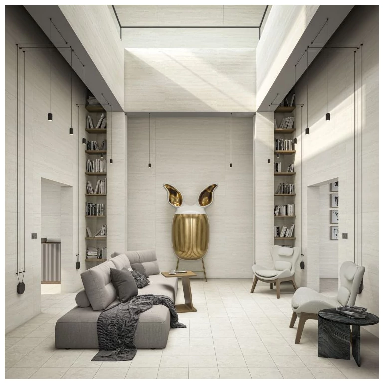 Płytki podłogowe o strukturze trawertynu w rozmiarze 60x120 cm to propozycja dla tych, którzy cenią sobie harmonię i naturalne piękno. Kremowy kolor płytek doskonale współgra z drewnem, kamieniem czy metalem, co daje niemal nieograniczone możliwości aranżacyjne.