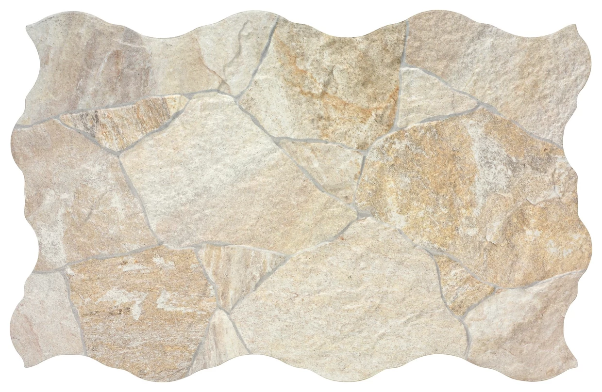 Ten gres podłogowy z kolekcji Sella, oznaczony jako Sella White gres 44x66, pokazuje wyraźnie kamienną fakturę, która nie jest jednolita - różnorodność kształtów przywodzi na myśl naturalne ułożenie kamieni. Kolorystyka to ciepłe beże i jasne tony, które nie męczą wzroku, a raczej wprowadzają do przestrzeni subtelną strukturę, bez przesadnej dominacji. Matowa powierzchnia dodatkowo wzmacnia efekt naturalnego kamienia, na co zwrócono uwagę przy produkcji.
