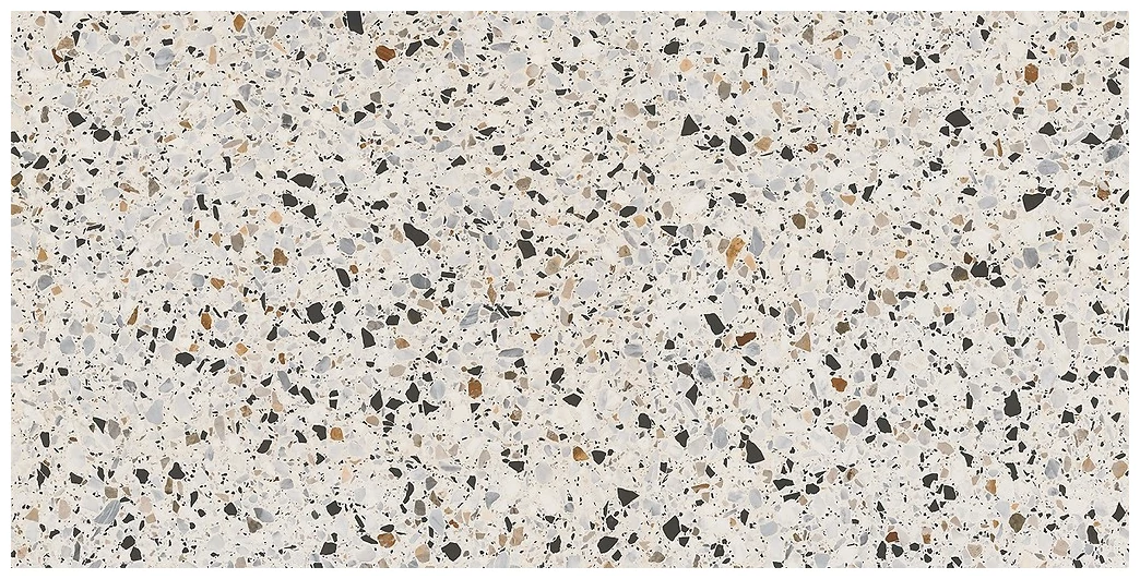 Hika Terazzo MIX Colors to wielkoformatowy gres o wymiarach 59,8x119,8 cm, który od razu zwraca uwagę różnorodnością kolorów i kształtów. Nazwa lastryko idealnie oddaje charakter tej powierzchni - płytka łączy w sobie fragmenty w odcieniach czerni, szarości, beżu i brązu, osadzone w jasnym tle. Ciekawa, nieregularna kompozycja wzoru sprawia, że każda płytka ma unikalny wygląd, co może się sprawdzić w przestrzeniach, gdzie zależy na ciekawym efekcie wizualnym, lecz bez przesadnej intensywności.