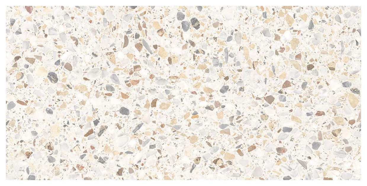 Gres Arch Gris to płytka o wymiarach 29,7x59,7 cm utrzymana w jasnej tonacji. Jej powierzchnia prezentuje charakterystyczny efekt lastryko - nieregularne fragmenty kamieni i kruszyw zatopione w jasnym tle tworzą wyrazisty, ale nieprzesadzony wzór. Kolory rozproszone po powierzchni to mieszanka odcieni beżu, brązu i szarości, które nadają lekkość i naturalność tej płytce. Matowa powierzchnia dodatkowo podkreśla autentyczność materiału i ogranicza niechciane refleksy światła.