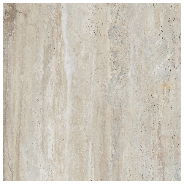 Ten gres podłogowy imitujący trawertyn prezentuje naturalny wygląd kamienia, w stonowanych odcieniach beżu i szarości. Powierzchnia jest matowa, co nadaje jej subtelny, żadnej nadmiernej świecącej powłoki, lecz raczej poprawia odczucie matowej struktury. Układ żył i porów na płytce przypomina autentyczny trawertyn, co jest cechą charakterystyczną tej kolekcji. Wzory i barwy nie są jednolite, więc można liczyć na interesujący efekt wizualny, niejednorodny, ale naturalny.