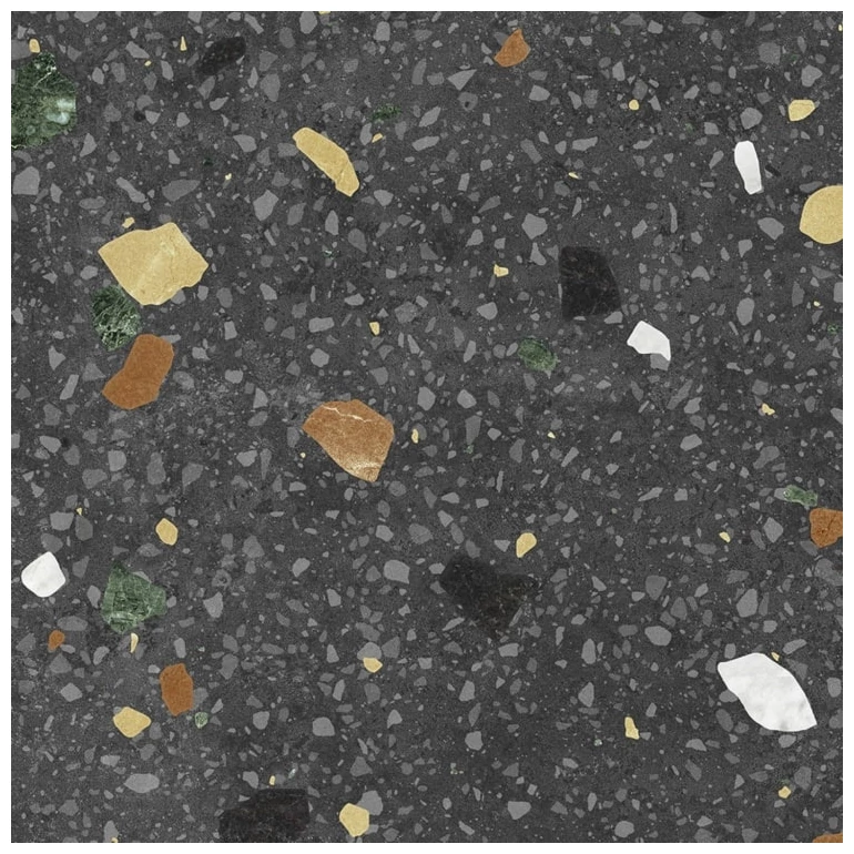 Gres podłogowy Tritato Negro to produkt, który wyróżnia się nie tylko twardością, ale także unikalnym wizualnym wzorem. Ciemne tło, z którego wyrastają kolorowe wtrącenia o nieregularnych kształtach i rozmiarach, nadaje powierzchni charakterystyczny, trochę surowy wygląd. To gres podłogowy lastryko z matową powierzchnią, która tłumi odbicia światła i sprawia, że wzór nie męczy wzroku nawet przy mocniejszym oświetleniu.