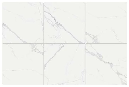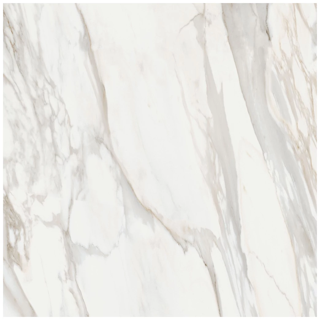 White Marble Calacatta ORO to gres rektyfikowany o wymiarach 61x61 cm, który wyróżnia się wyraźnym wzorem zbliżonym do naturalnego marmuru. Jasne tło z nieregularnymi, szaro-beżowymi żyłkami nadaje mu surowości i lekkości jednocześnie. Ułożenie płytek w większym formacie podkreśla harmonijną, przestrzenną kompozycję. Matowa powierzchnia eliminuje niepożądane refleksy światła, co pozwala na komfortowe użytkowanie zarówno w intensywnie oświetlonych, jak i zacienionych wnętrzach.