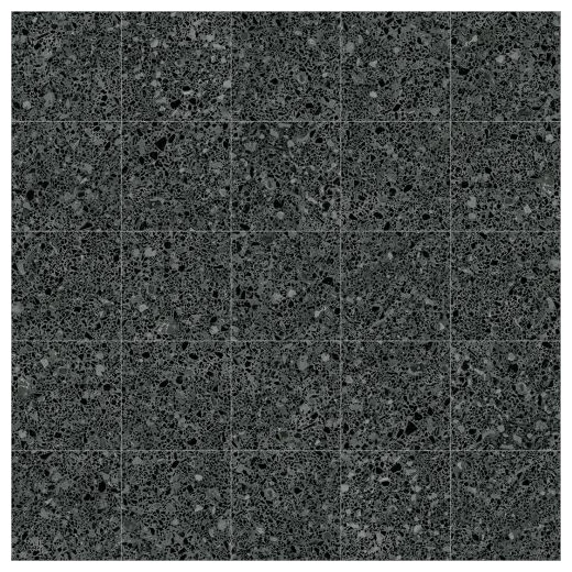 Produkt Battuto Grafito to mały gres szkliwiony hiszpański o rozmiarze 20x20 cm, pochodzący z kolekcji Stracciatella producenta Arcana. Jego powierzchnia ma matowe wykończenie, które minimalizuje odbicia światła, co wpływa na subtelność wizualną podłogi. Charakterystyczny efekt lastryko to zróżnicowane, nieregularne wzory, tworzone przez czarne i szare elementy na ciemnym tle, które nadają powierzchni surowy, loftowy klimat.