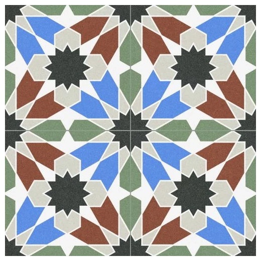 Płytka Duomo Marrakesh gres 45,2x45,2 to gres szkliwiony hiszpański w stylu vintage na podłogę, który zdecydowanie zwraca uwagę dzięki ornamentom na swojej powierzchni. Kolorystyka łączy barwy takie jak zielenie, błękity, brązy oraz czerń i szarość, co tworzy ciekawą, niebanalną mozaikę. Układ wzoru pozwala na wiele strategicznych wariantów ułożenia - tworzy efekt patchwork, który potrafi ożywić przestrzeń, nadając wnętrzu indywidualny charakter.