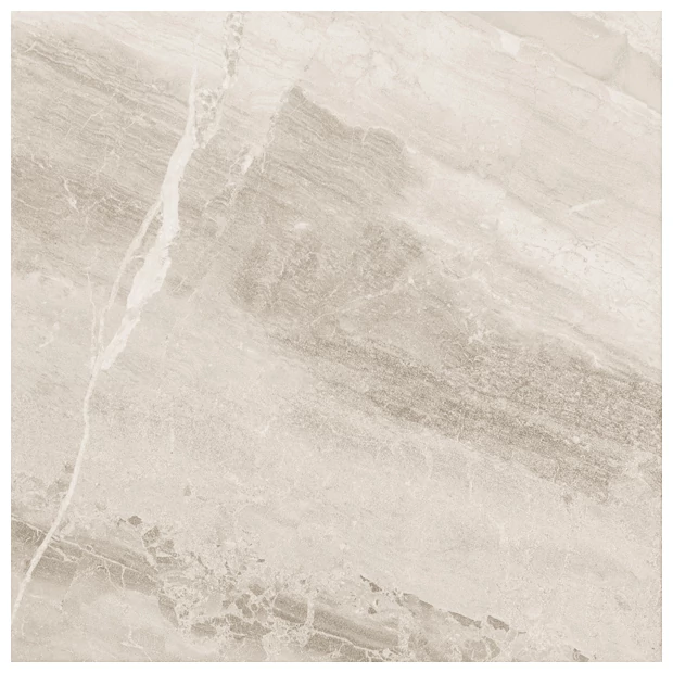 Fino Grey to gres szkliwiony na podłogę imitujący kamień, który wyróżnia się stonowaną kolorystyką i subtelną fakturą na powierzchni. Dominującą cechą jest rozbudowana grafika przypominająca kamienne płyty z delikatnymi żyłkami i różnorodnością odcieni beżu i szarości. Ta wielkoformatowa płytka o wymiarach 59,8x59,8 cm pozwala na uzyskanie spójnej i jednolitej podłogi, gdzie detale powierzchni tworzą interesujące przejścia tonalne.