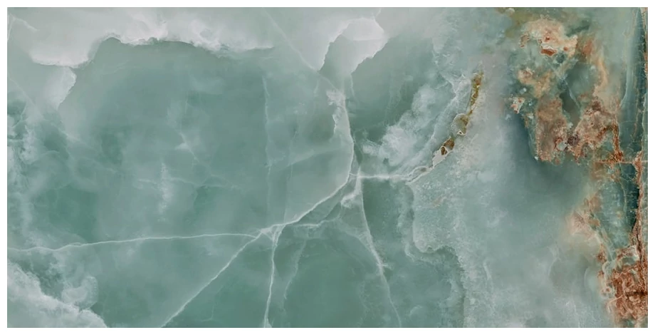 Gres szkliwiony na podłogę Iceland Mint to produkt, który zwraca uwagę nietypowym odcieniem zieleni. Przypomina kamień o naturalnych żyłkach i wyraźnych przejściach tonalnych. Wzory nie są sztywne czy regularne - raczej dają wrażenie naturalnie ułożonych warstw mineralnych. Całość ma połyskliwą, polerowaną powierzchnię, co podkreśla głębię kolorów i przezroczystość detali. To materiał, który z łatwością może wprowadzić do wnętrza surowość, ale też lekkość i nieco chłodu.