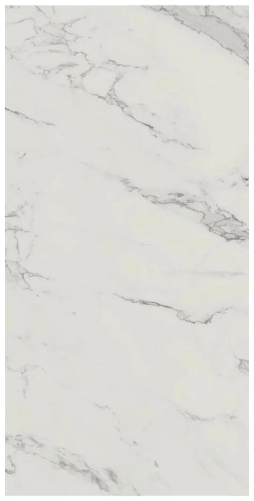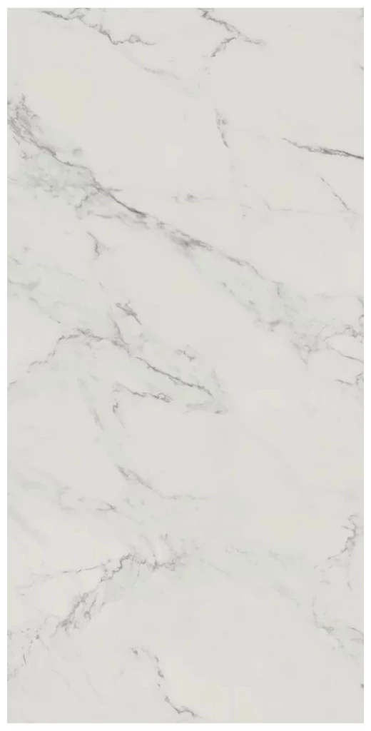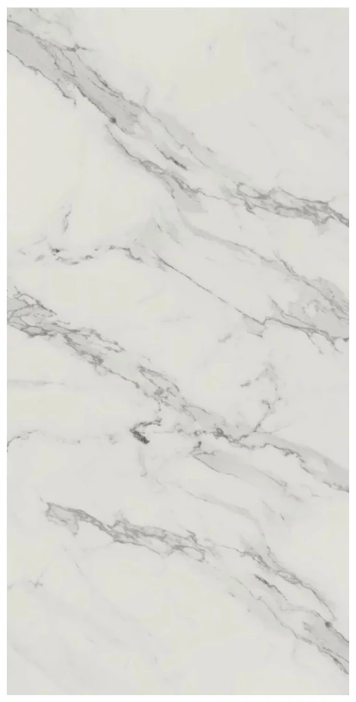 Carrastone White to gres mat rektyfikowany o wymiarach 59,8x119,8 cm, który od razu zwraca uwagę swoją powierzchnią inspirowaną marmurem. Jasna, delikatna baza podkreślona jest naturalnie wyglądającymi żyłkami w szarościach, co daje efekt autentycznego kamienia, ale bez jakiejkolwiek przesady. Matowa struktura sprawia, że powierzchnia jest nieświecąca, a przez to mniej podatna na odciski i przebarwienia.