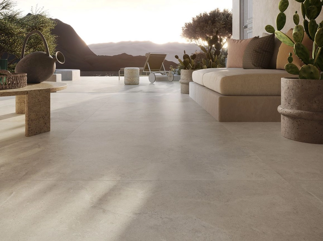 Solaris Ostuni to gres w formacie 120,0 x 120,0 cm o wykończeniu Honed. Widoczna na płytce, stonowana, kremowo-beżowa powierzchnia z subtelną, kamienną fakturą wpisuje się w klasyczne aranżacje, które nie potrzebują efektownych wzorów, a za to cenią spójność i prostotę. Powierzchnia matowa, lekko satynowana - spokojna w odbiorze, ale nie całkiem monotonna.
