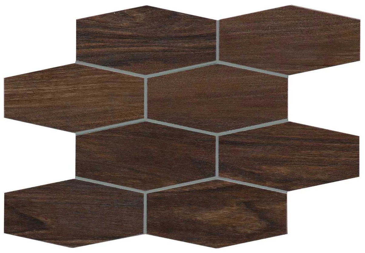 Marazzi Treverkchic Noce Americano MH5R mozaika 25x30 - heksagonalna mozaika gresowa imitująca drewno