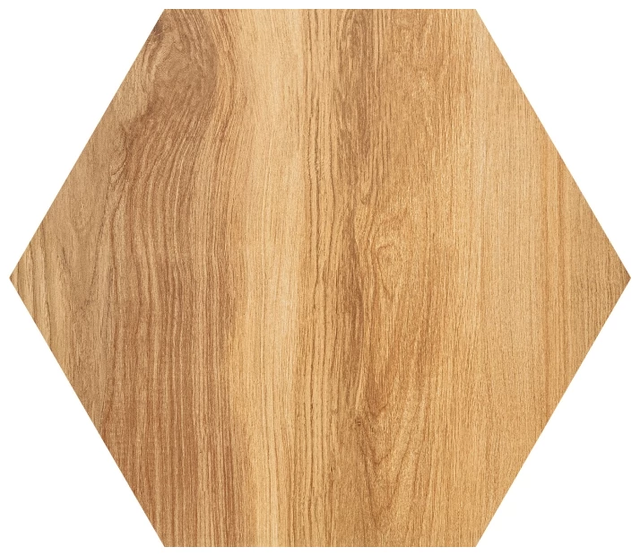 Heksagonalna płytka dekoracyjna drewnopodobna Senja Wood mat HEX to gres, który imituje strukturę i kolorystykę naturalnego drewna. Odcienie beżu i brązu tworzą estetyczną całość, nie brak tu widocznych usłojenia i niuansów typowych dla drewna. Płytka ma matową powierzchnię, co niweluje odbicia światła i dodaje jej bardziej stonowanego charakteru. Dzięki temu prezentuje się autentycznie, bez sztucznego połysku.