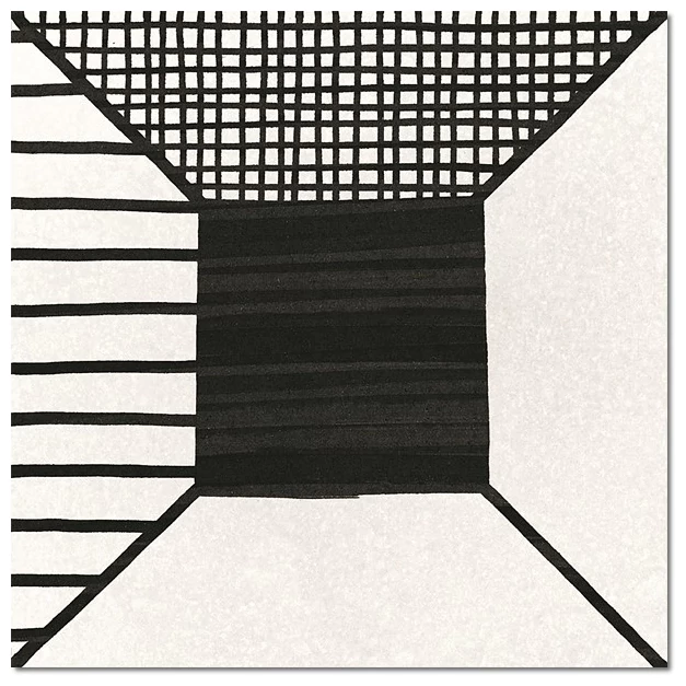 Płytka ceramiczna Caprice Deco Block B&,w gres 20x20 to produkt, który od razu zwraca uwagę swoim wyrazistym wzorem. Konstrukcja bazuje na czarno-białej palecie, co sprawia, że jest zarówno kontrastowa, jak i nowoczesna. Geometryczne kształty - linie i kratki - tworzą wyrazistą, choć nieprzesadzoną kompozycję, dzięki czemu płytka może pełnić rolę elementu dekoracyjnego w przestrzeni.