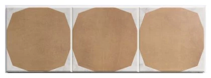 Terra Star gres 15x45 charakteryzuje się ciepłym odcieniem brązowym, widocznym na trzech płytkach prezentowanych obok siebie. Każda płytka ma wyraźnie wielokątny kształt centralnej części, ale ogólnie jest prostokątna o wymiarach 15x45 cm. Ta barwa koresponduje ze stylem naturalnym i stonowanym, dobrze komponując się z wnętrzami, które mają proste, ziemiste tonacje.