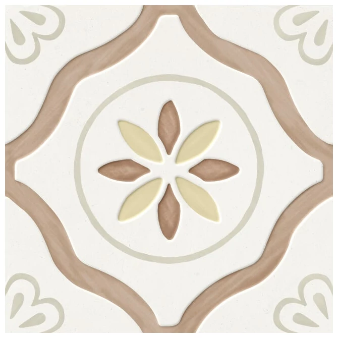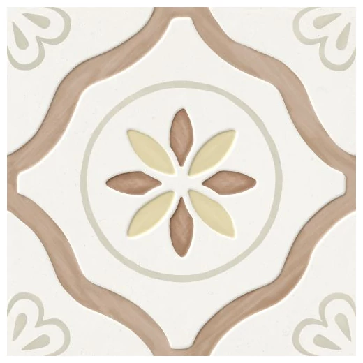 Produkt Llevant Clay Petals LT od producenta Peronda wyróżnia się charakterystycznym wzorem, który jest delikatny, a jednocześnie wyrazisty. Kombinacja beżów i kremowych odcieni tworzy spokojną, lecz niepozbawioną życia kompozycję. Wzór geometryczny, z centralnym motywem przypominającym kwiatowe płatki, a także łagodnie zaznaczone linie, dają efekt uporządkowany, ale nie monotematyczny. To sprawia, że ten hiszpański gres podłogowy wprowadza do przestrzeni harmonię bez nadmiernej formalności.