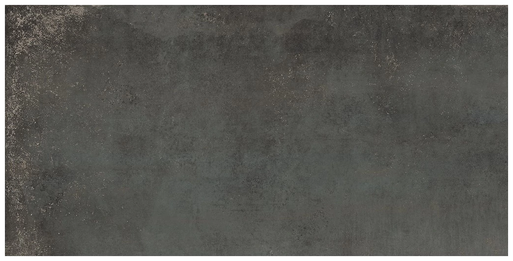 Dern Graphite Rust to gres o dużym formacie 59,8x119,8 cm, który przyciąga uwagę stonowaną, ciemnoszarą barwą z subtelnymi naleciałościami przypominającymi jednolitą, lekko postarzaną powierzchnię. Ta powierzchnia lappato oznacza, że płytka nie jest błyszcząca, lecz półmatowa z delikatnym połyskiem, dzięki czemu zyskujemy wyważony efekt - ani zupełny mat, ani typowy połysk. To ważne, bo nadaje wnętrzu charakter niezbyt nachalny, ale też niepozbawiony głębi.