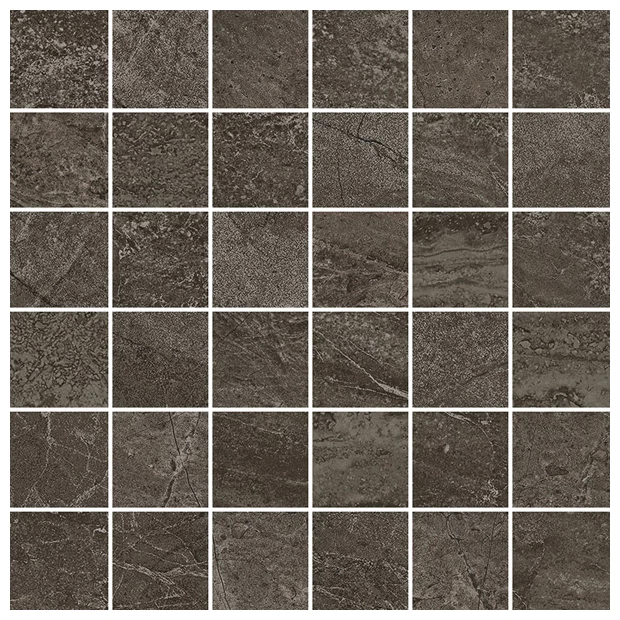 Hymond-Sp Grafito mozaika 30x30 to gresowa mozaika o powierzchni z efektem marmuru, która ma wyraźnie zaakcentowaną strukturę i naturalne zróżnicowanie kolorystyczne. Kolorystyka utrzymana jest w ciemnej, grafitowej tonacji - odcienie szarości mieszają się tutaj z delikatnymi żyłkami, charakterystycznymi dla kamienia naturalnego. Powierzchnia lappato nadaje mozaice lekki połysk, który nie jest jednak przesadnie refleksyjny, dzięki czemu całość prezentuje się bardziej stonowanie, ale nadal efektownie.