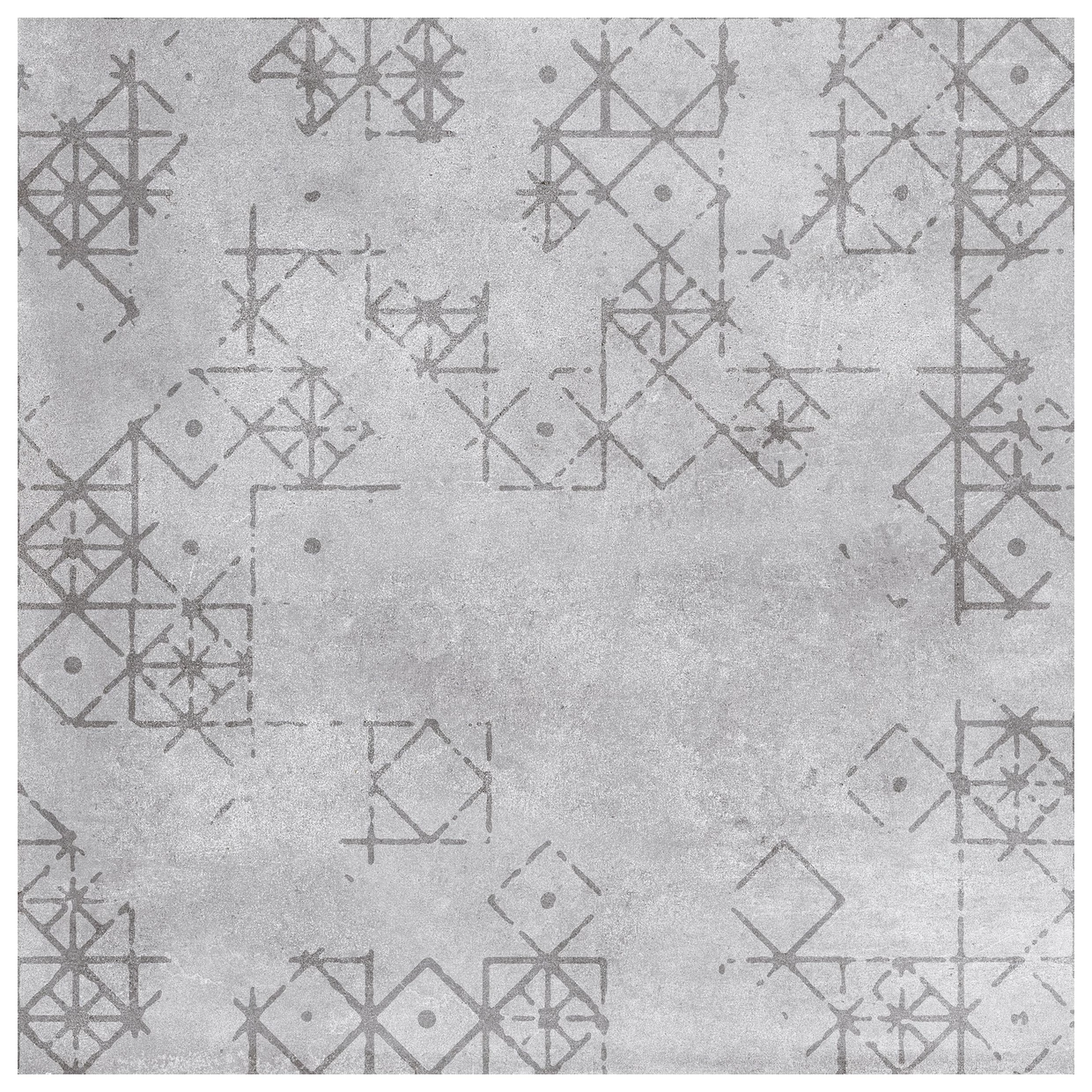 Motown S/L/R gres Lapatto rektyfikowany 60x60 to płytka, która zwraca uwagę przede wszystkim swoją wyrazistą, geometryczną formą. Delikatne konstelacje linii i punktów układają się w niejednorodny wzór, tworząc efekt lekko rozproszonej mozaiki. Szarość podkładu jest neutralna, ale nie monotonna - zauważyć można subtelne przejścia tonów, które dają głębię. Ten gres dekor z kolekcji Shark oferowany przez hiszpańskiego producenta Peronda wyróżnia powierzchnia lappato, nadająca delikatny, lekko satynowy połysk. Całość ma prostokątny format 60x60 cm, który jest na tyle duży, by wzór mógł się swobodnie rozłożyć.